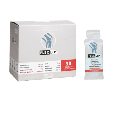 Wysoko przyswajalny kolagen rybi Naticol® wraz z glukozaminą, chondroityną, kwasem hialuronowym, cynkiem, manganem, witaminą C i D w postaci liposomalnej.